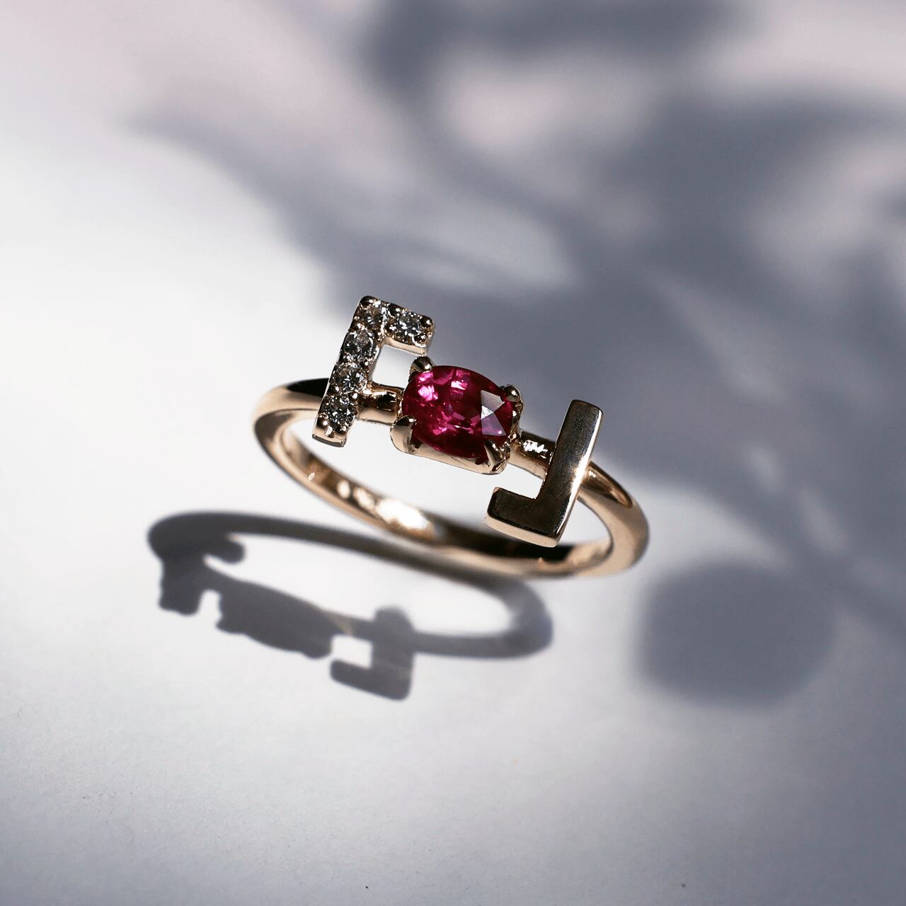 素材: 非加熱ルビー・アフリカ産(鑑別付)、ダイヤモンド、K10YG